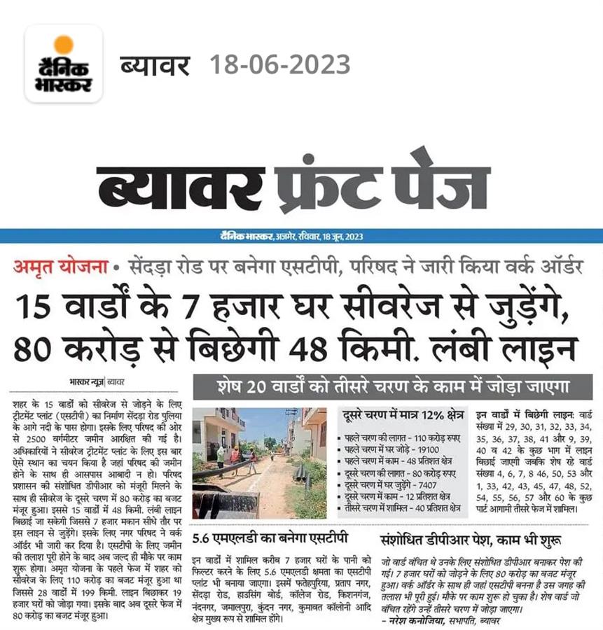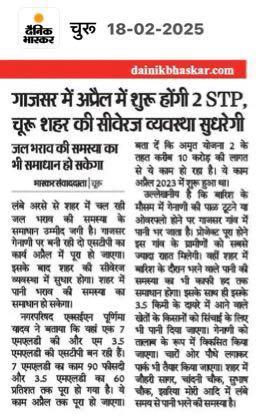 Chairman Payal Saini has launched the second phase of sewerage scheme in Ward No. 20 in Churu. she said that the long-standing demands of half of the city's population regarding sewerage will be fulfilled soon, that by the end of this year, half a dozen wards of the city will be covered with sewerage line. This work, to be done at a cost of 73 crores, was inaugurated by worshiping JCB